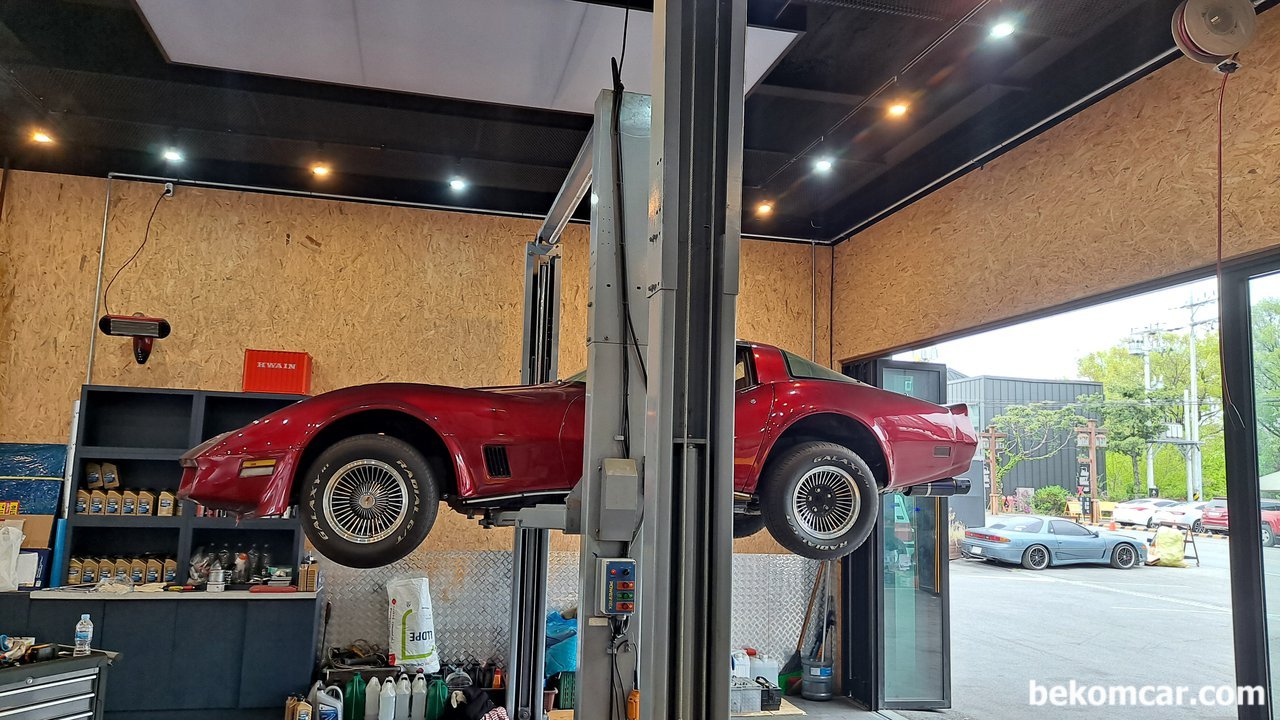 부짜모터스에서 필요한 정비와 리스토어중인 해외직수입된 스포츠카 쉐비 콜벳 C3.