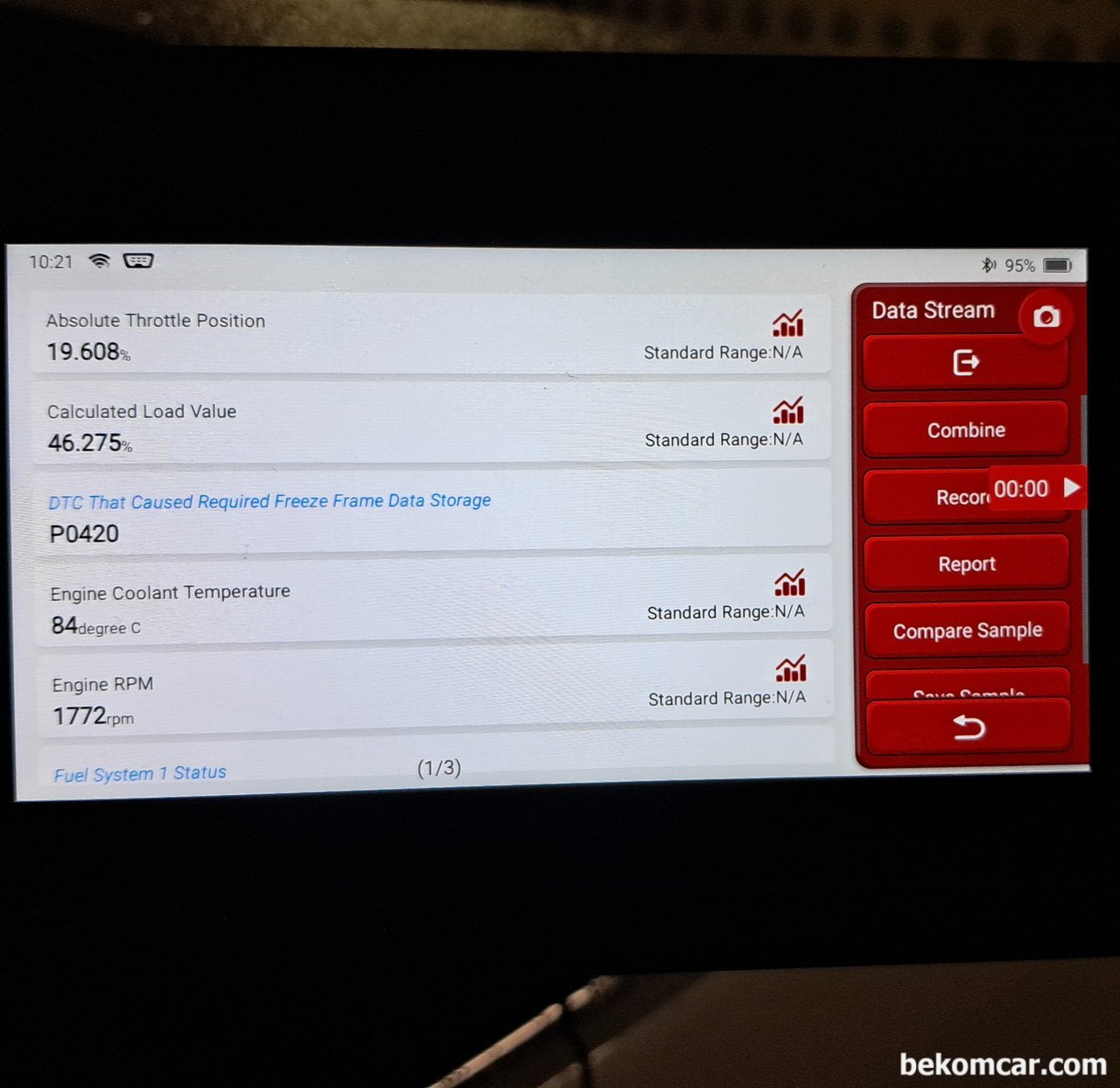혼다 레전드 엔진체크등의 원인을 파악하기 위하여, 프리즈프레임 데이터 확인을 한다. 촉매 효율저하 P0420(뱅크1) 때문에 엔진체크등이 표시된것이다. 엔진체크등 (엔진경고등과 다름) 생기면 꼭 FFD 프리즈프레임 데이터를 사진으로 찍어두자.