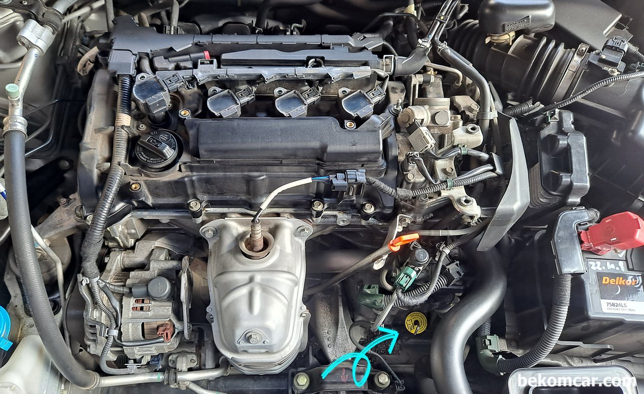 미션오일 주입구 캡을 보면 CVT 미션은 HCF-2 시티커가 있다. 자료사진은 베콤카에서 CVT 미션액을 드레인 방식으로 교환하고 있는 혼다 어코드 9세대이다.