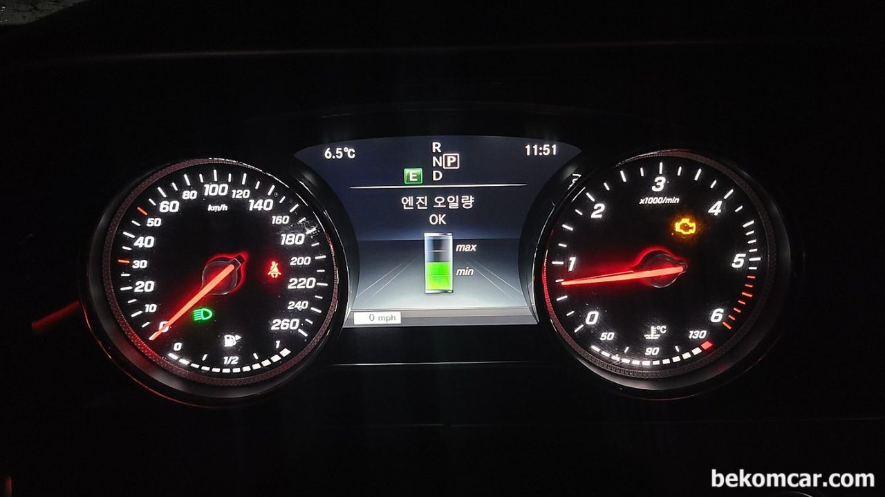 메르세데스 벤츠 W213 220D 2018년 엔진오일 용량은 각 차량별 오일소모등 특징을 감안하여 5.6L~6.0L사이로 조정한다. Photo Courtesy of 케*로