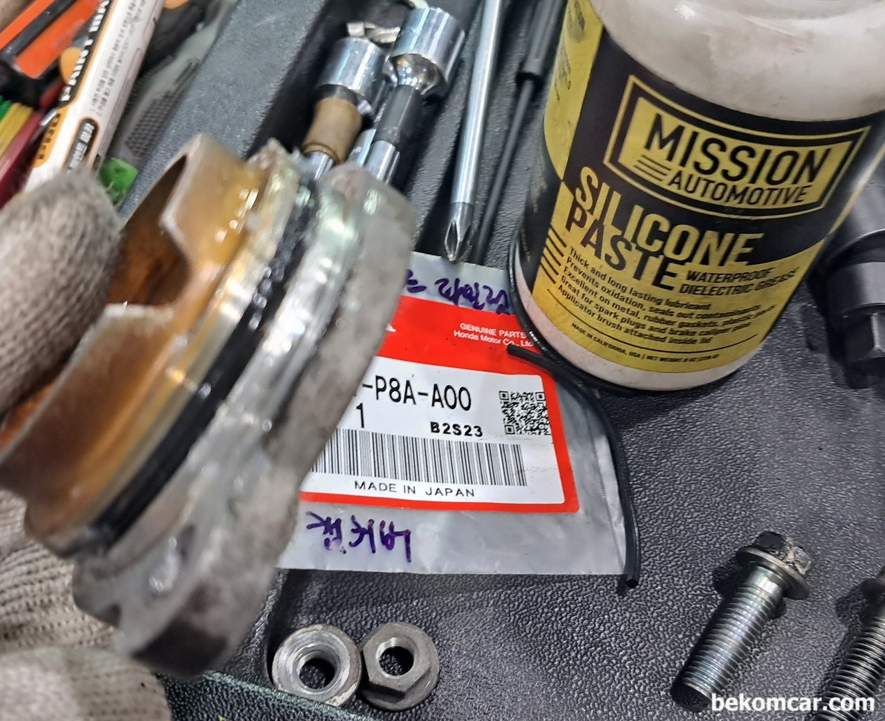 혼다 J35 J37엔진의 누유부분중 하나가 EGR 뒤에 숨어있는 캠새프트 쓰러스트 커버 리테이너 가스켓이다. EGR과 너무 붙어있어 열이 많으니 가스켓 경화가 빠르다. 가스켓 교환시는 꼭 순정을 사용하고 실리콘페이스트를 발라주어 똑 하고 경쾌한 소리가 들리게 장착한다. 이번 베콤카 정비차량은 혼다 레전드 이다.