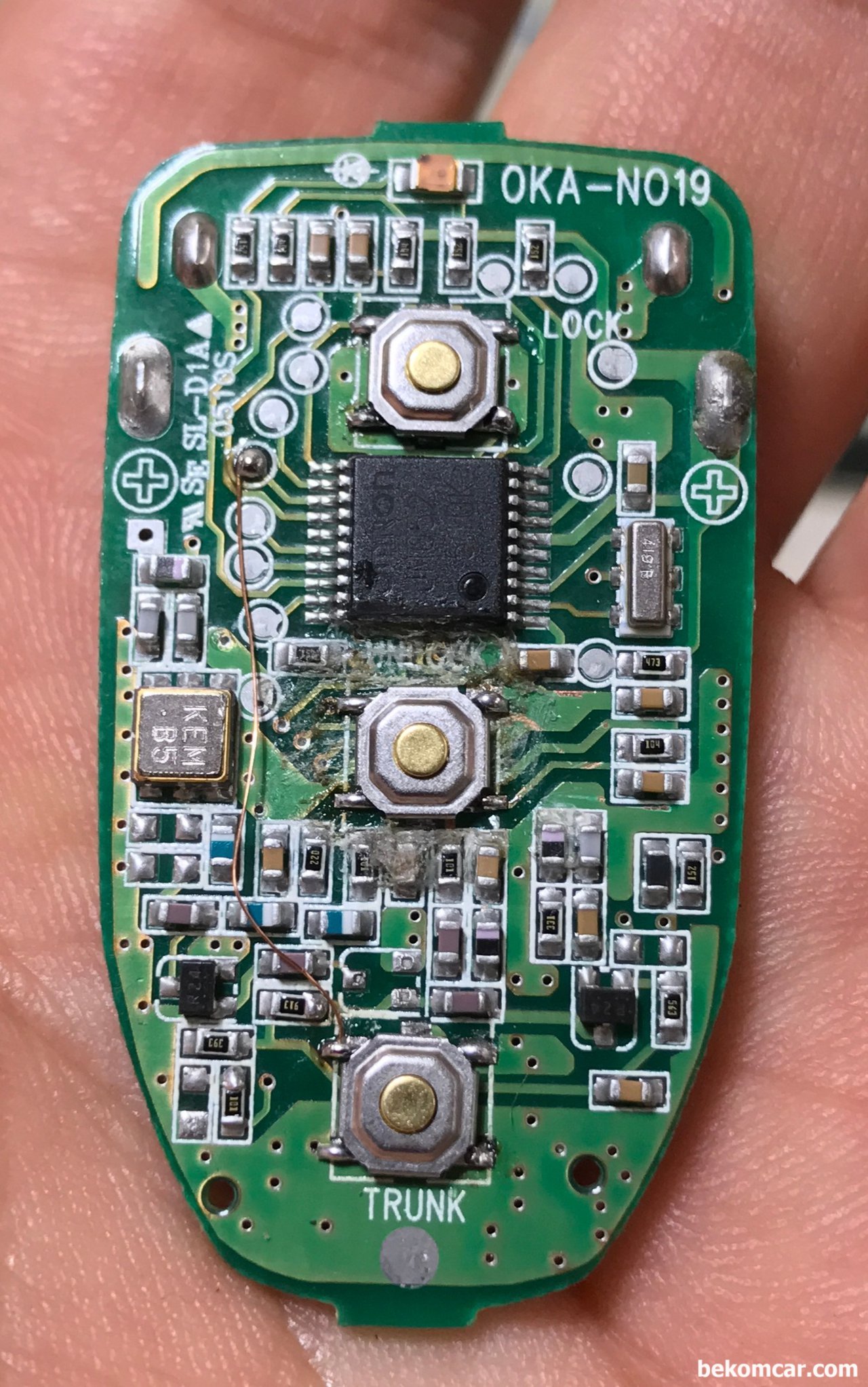 NF 쏘나타 사진은 이모빌 리모콘 키 PCB 기판에 있어야 할 TR이 없다.